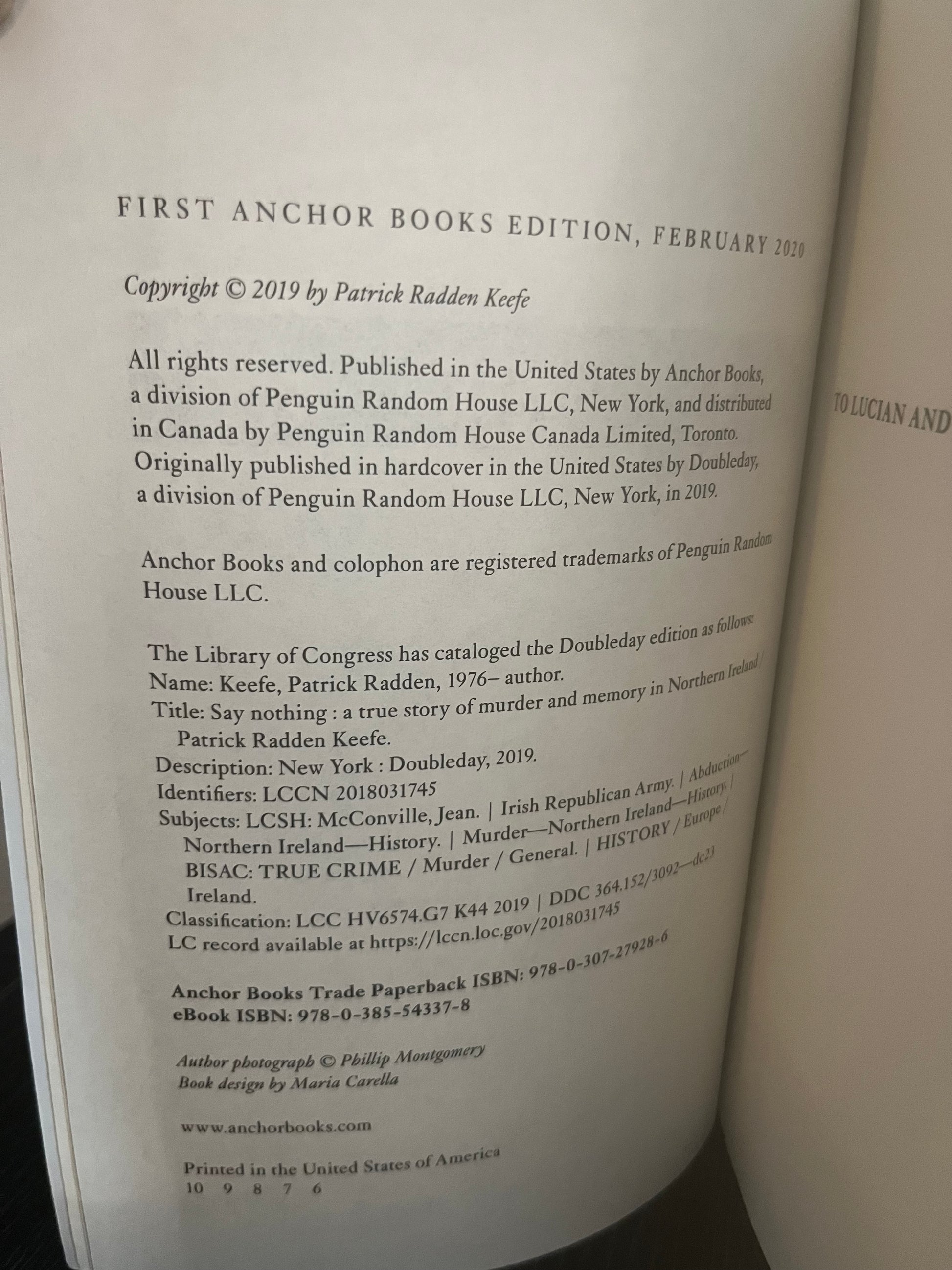 Say Nothing: A True Story of Murder and Memory in Northern Ireland by Patrick Radden Keefe